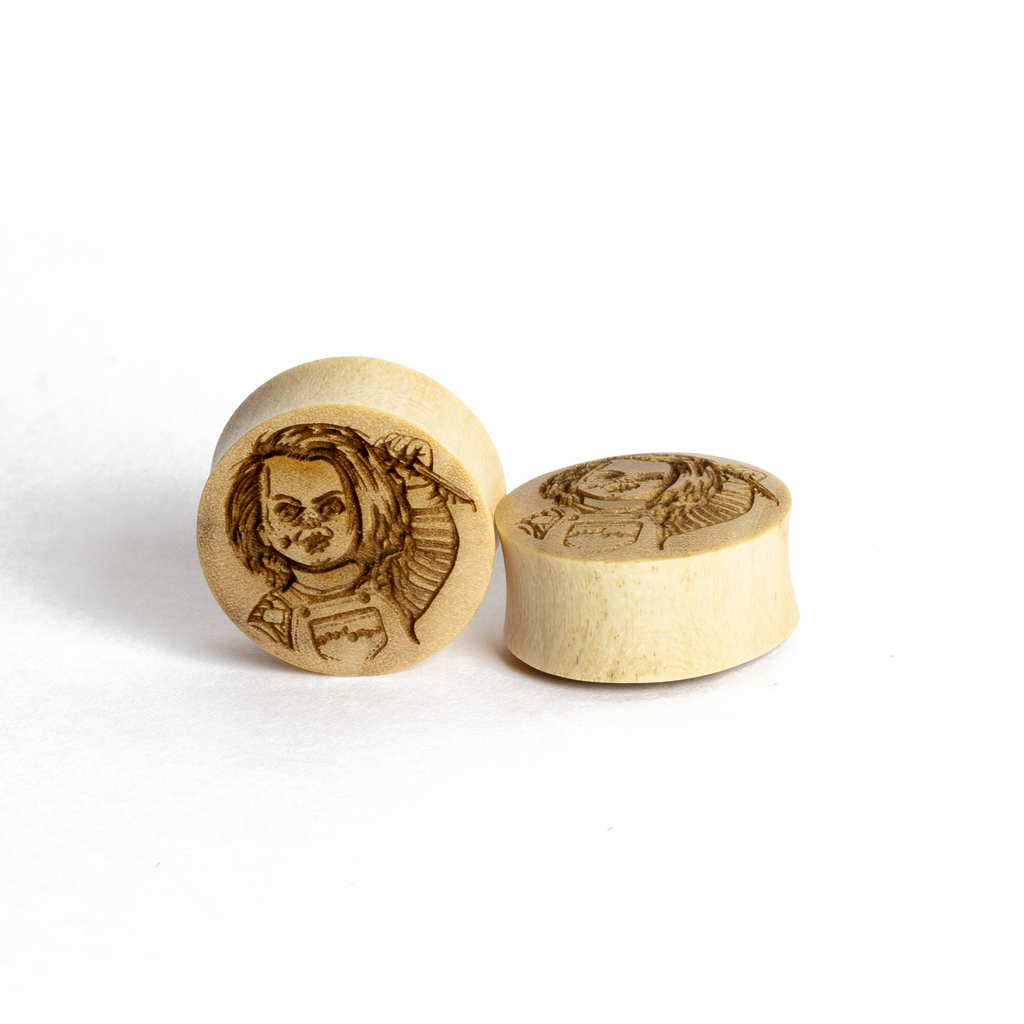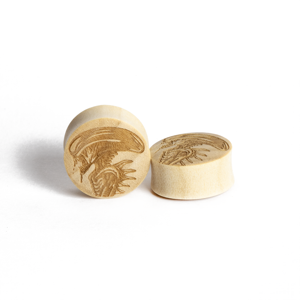 Alien Inspired Engraved Wood Plugs
