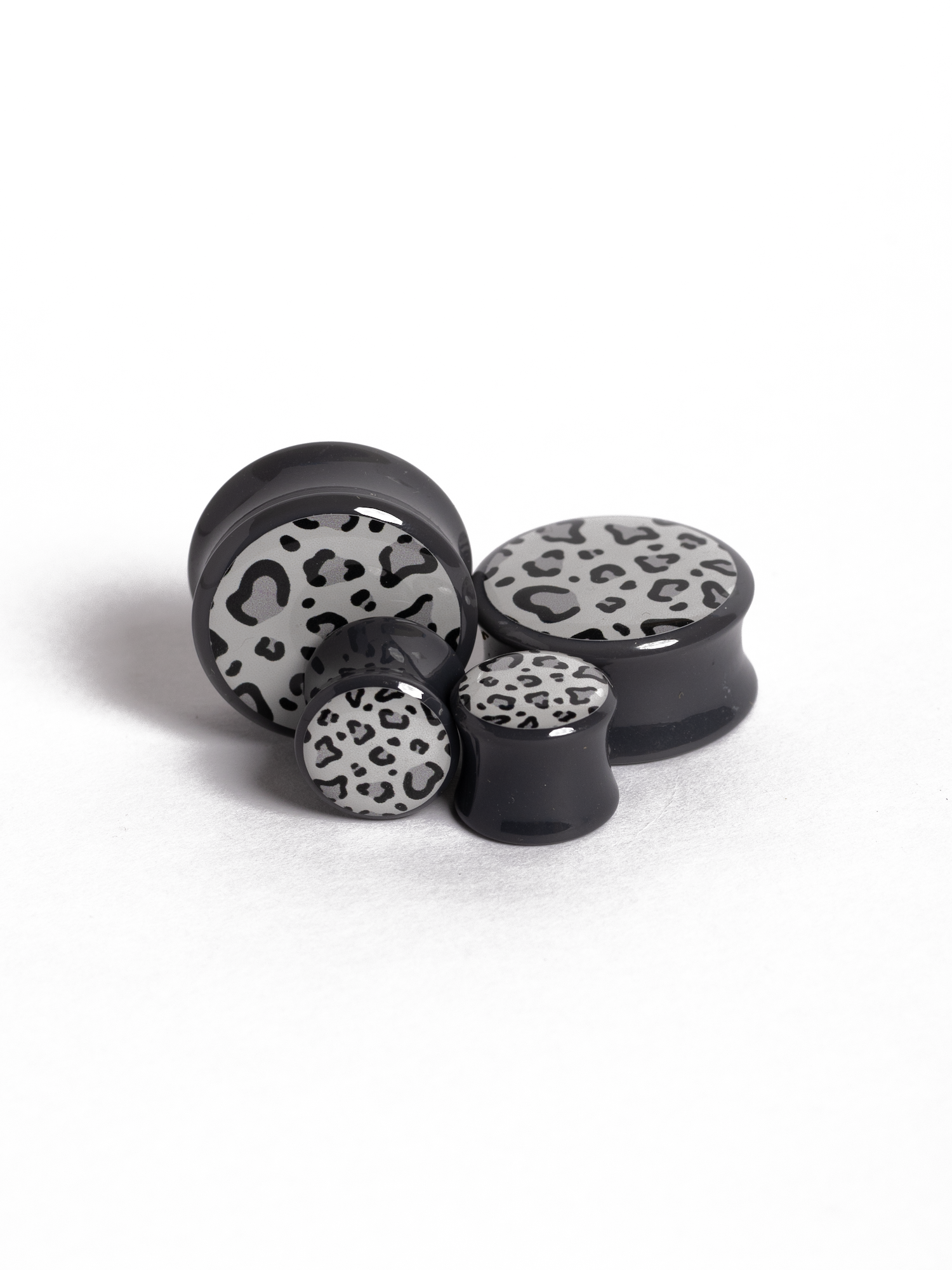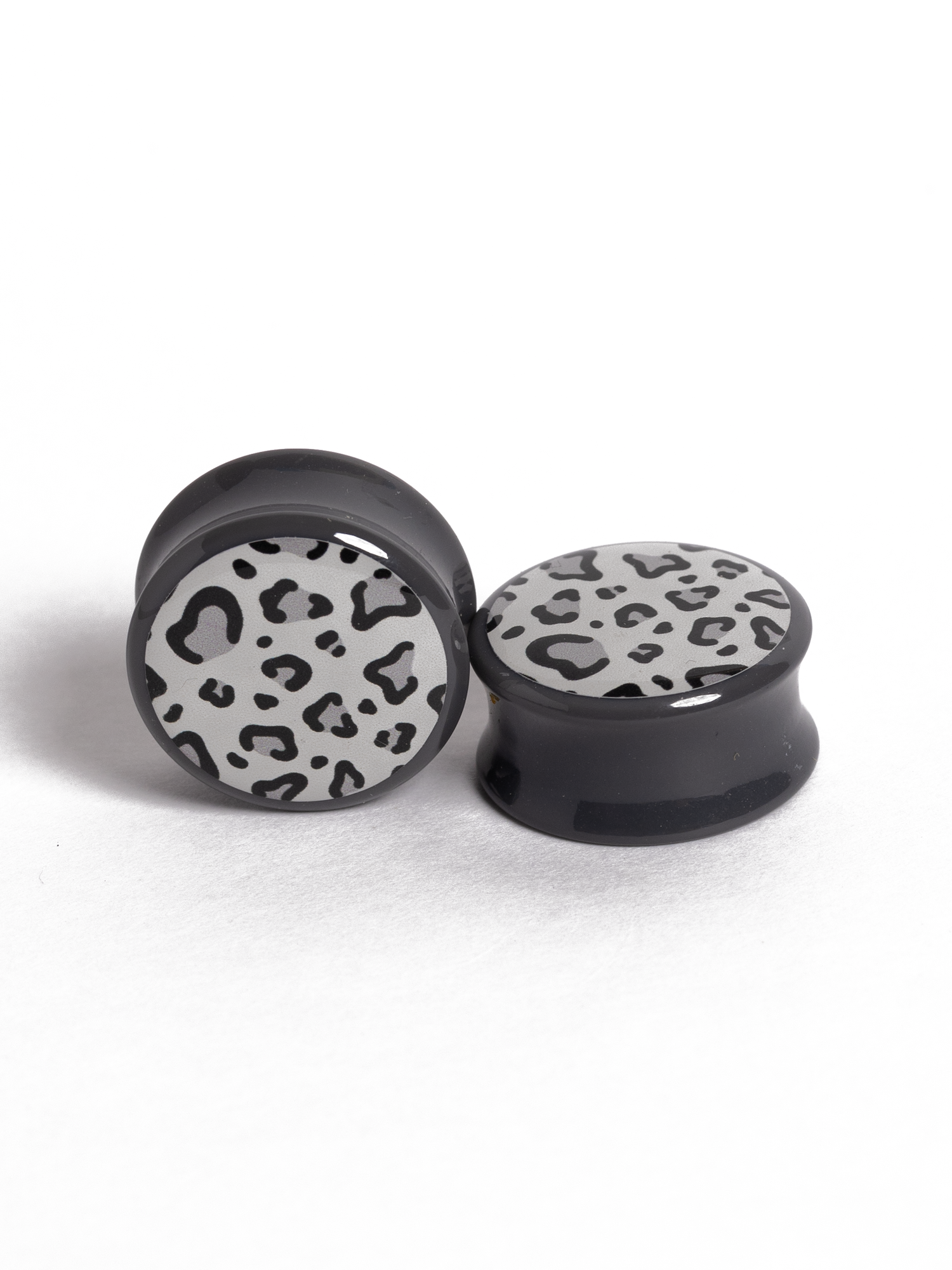Snow Leopard Acrylic Image Plugs - 8mm β 0g / Black is backordered and will ship as soon as it is back in stock.